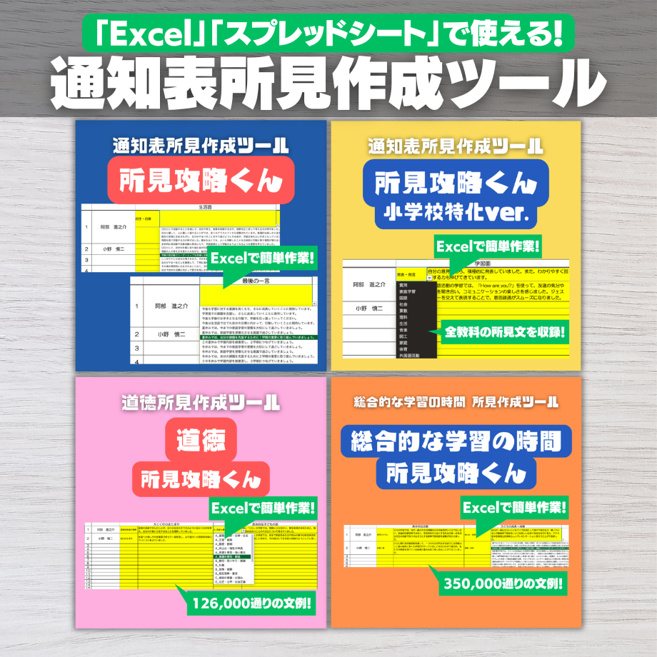 さらに効率化を図るために、Excelであっという間に所見を作成できるツールをご活用ください!↓