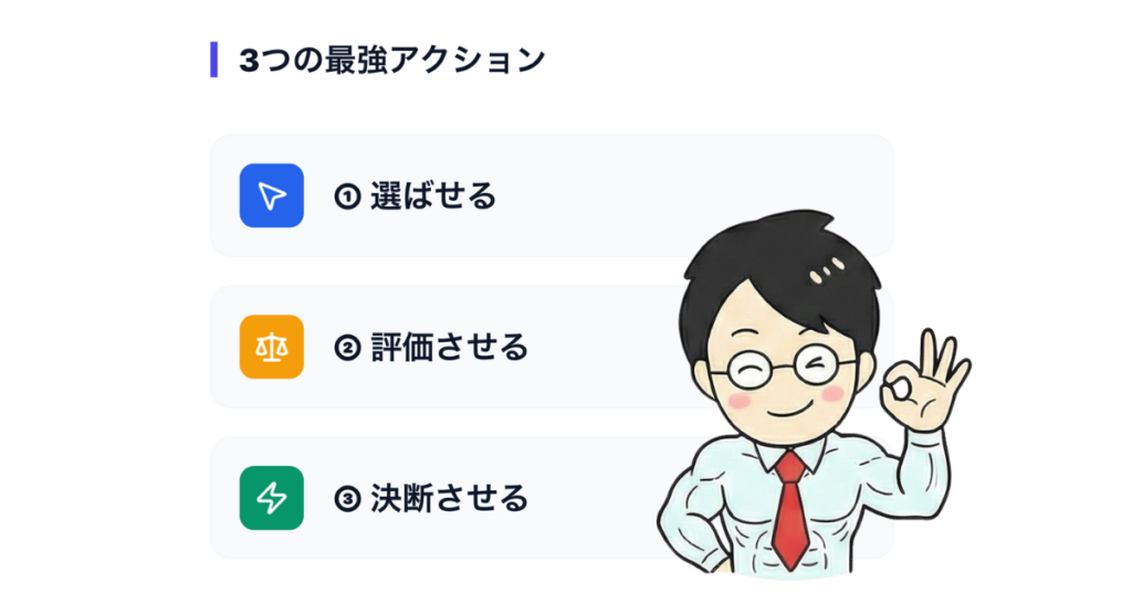 2. 「選ぶ・評価する・決断する」問いに変える。