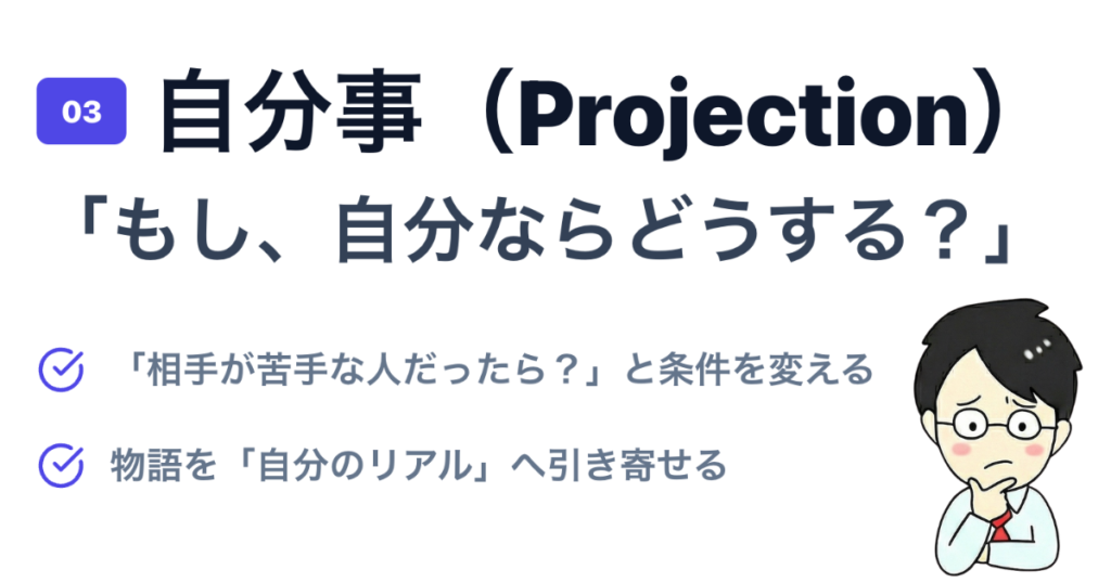 最後に、「もし自分だったら?」と置き換えられるポイントを探します。