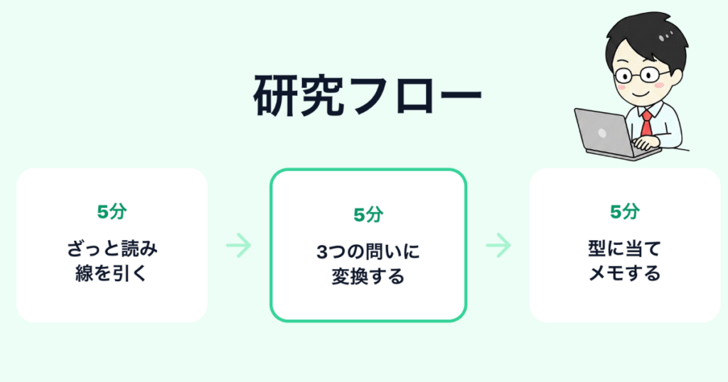 - 精読しなくていいです。「違和感」「葛藤」「自分事」になりそうな箇所に線を引くだけ。