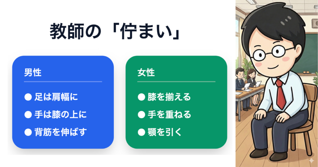 面接中の姿勢は、あなたの「教師としての落ち着き」や「誠実さ」を象徴します。